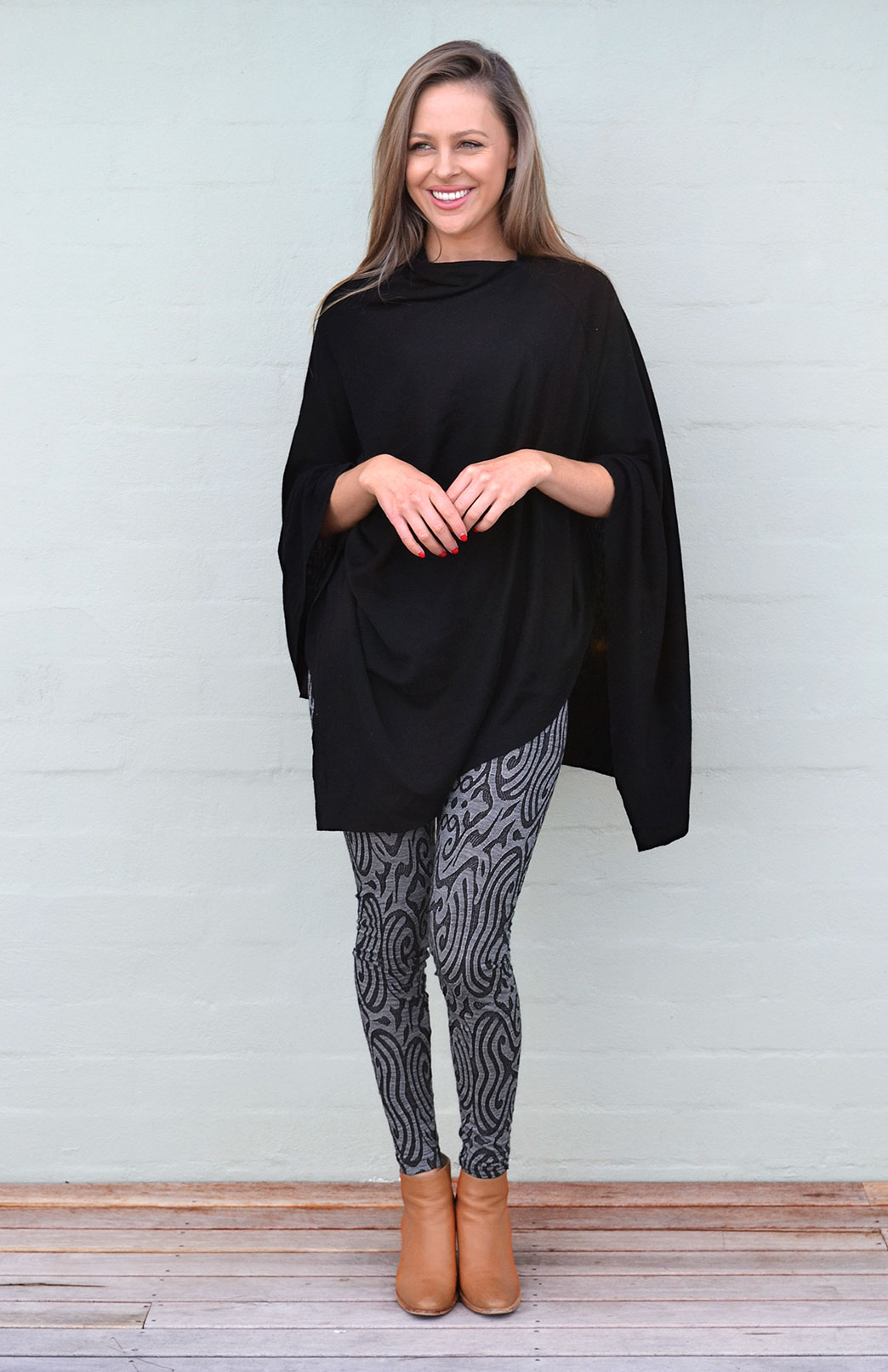 Women's Black And Grey Patterned Leggings | Smitten Merino Tasmania